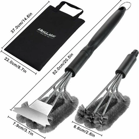 - 【DUE TESTE DI SPAZZOLE IN FILO PER BARBECUE DAL DESIGN INNOVATIVO】 Il nostro robusto set di spazzole per barbecue si combina con una custodia, una lunga impugnatura antiscivolo e due testine in filo per barbecue per un facile utilizzo.alternativa, una delle quali è dotata con un raschietto. Questo tipo di spazzola per barbecue multiuso è un’esclusiva versione aggiornata di tutte le spazzole per la pulizia del barbecue.