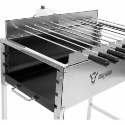 BBQ-Toro Griglia A Carbonella In Acciaio Inox Con Attacco Per Spiedini 11 Spiedini E Motore