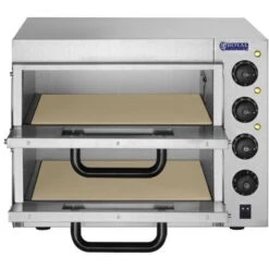 Il “forno per pizza Linea MODERNO 3Pizze” è il modo migliore per preparare deliziose pizze in pochi minuti. La sua cupola in acciaio inox isolato garantisce un calore rapido e uniforme e consente di raggiungere temperature fino a 500°C.
