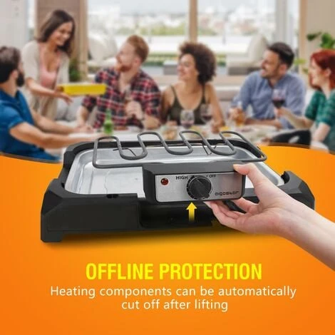 Piastra elettrica multifunzione con griglia zincata di grandi dimensioni (50 x 34,5 cm) che consente di cucinare da 2 a 5 porzioni contemporaneamente, ottima per feste di famiglia o barbecue.