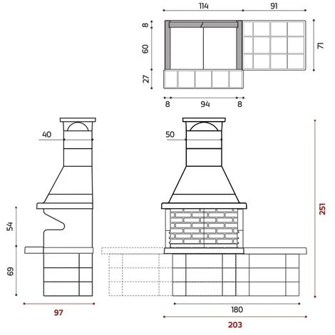 I barbecue Edilmark sono strutture prefabbricate idonee per la cottura di cibi alla griglia; possono essere posizionati all’esterno (in giardino ma anche sotto a un porticato). I materiali scelti sono di prima qualità per garantire sicurezza e durata nel tempo: pareti e piano focolare in materiale altamente refrattario, le pareti restanti in un agglomerato cementizio di argilla espansa e armate con staffe in ferro. La graticola di cottura è in acciaio alimentare, regolabile a più altezze, e presenta dei manici in legno per garantire la massima sicurezza durante l’utilizzo.
