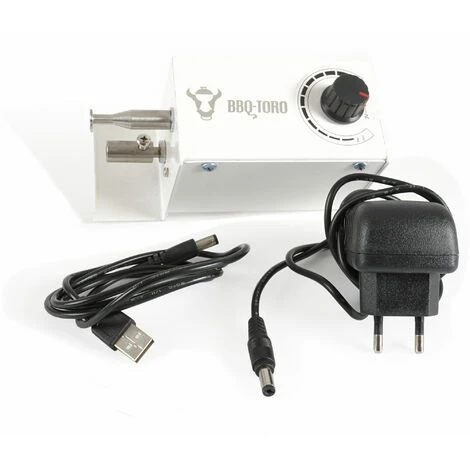 Con il giraspiedo elettrico BBQ-Toro è possibile produrre deliziosi spiedini per barbecue in modo pratico e senza fatica. Grazie all’azionamento elettrico, tutti gli spiedini vengono girati in modo uniforme e il cibo grigliato rimane succoso e tenero. La velocità di rotazione può essere regolata in continuo sul motore.