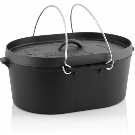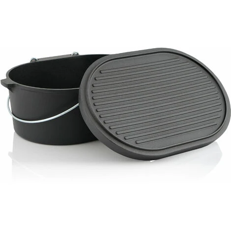 La Dutch Oven è una pesante pentola tradizionale in ghisa e un coperchio perfettamente aderente con cui è possibile cucinare, arrostire, brasare, friggere, cuocere a vapore e infornare ovunque. Grazie alla sua massa elevata (ghisa), la pentola olandese regola il calore in modo irregolare e consente quindi una cottura uniforme. È sufficiente posizionare carboni ardenti, braci o bricchette per barbecue sul coperchio e sotto la pentola e l’esperienza del forno olandese può iniziare. Il bordo rialzato del coperchio offre condizioni ottimali per la brace e le braci.