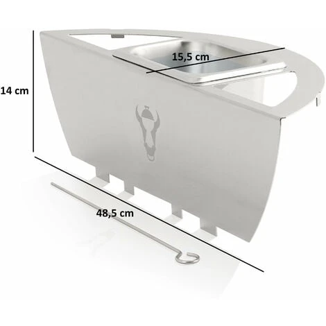 L’inserto per affumicatore in acciaio inox V2A di alta qualità offre spazio sufficiente per la carbonella e i trucioli per l’affumicatura, con dimensioni di 48,5 x 15,5 x 14 cm, garantendo così un’affumicatura prolungata.