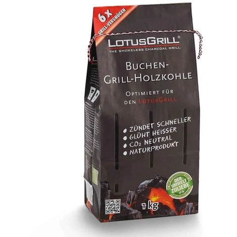 LotusGrill vanta un contenuto di carbonio estremamente elevato e un potere calorifico lordo, il che significa che si accende in modo particolarmente rapido e brucia pi caldo e pi a lungo del carbone convenzionale.