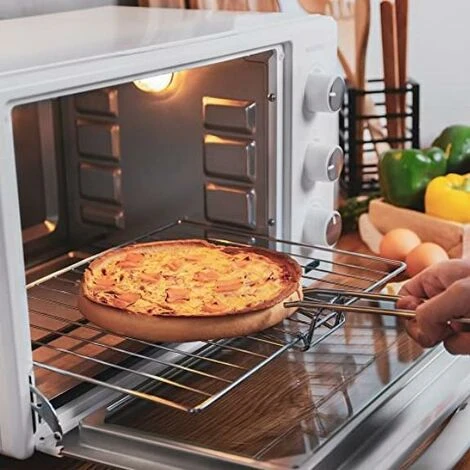 Mini forno in acciaio laccato bianco. Luce interna che aiuta a controllare lo stato di cottura.