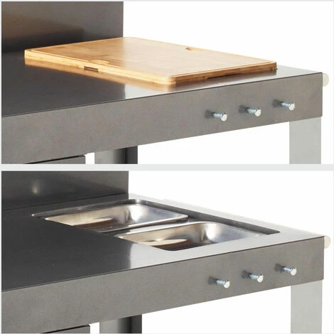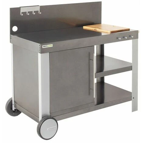 La credenza NOVA XL è la credenza più completa. È possibile appoggiarvi la plancha mentre si cucina, grazie al tagliere e ai numerosi spazi di stoccaggio: armadietti con ripiani, portautensili.