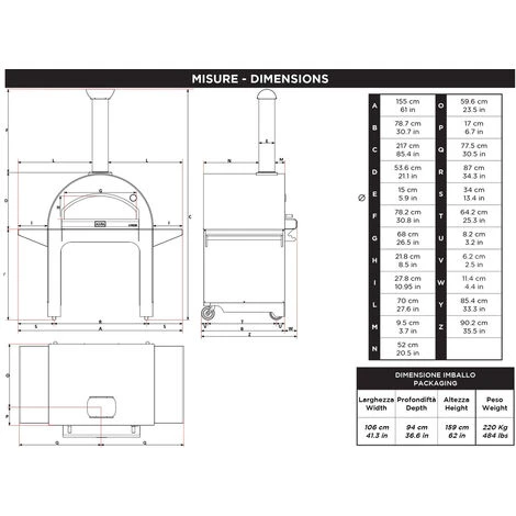 - Forno a legna da giardino con volta interamente in acciaio inox che permette di raggiungere temperature elevate con un consumo limitato di legna.