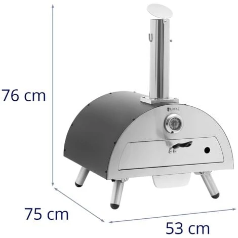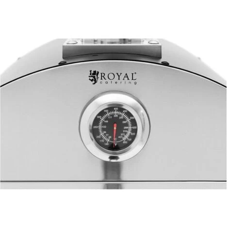 Nell’alloggiamento del forno a legna è installato un termometro che misura costantemente la temperatura all’interno del forno. Se la temperatura scende, puoi aggiungere altra legna attraverso l’apertura. Il forno da pizzeria è stabile e sicuro grazie ai suoi 4 piedi, che si possono piegare per offrire un facile trasporto.