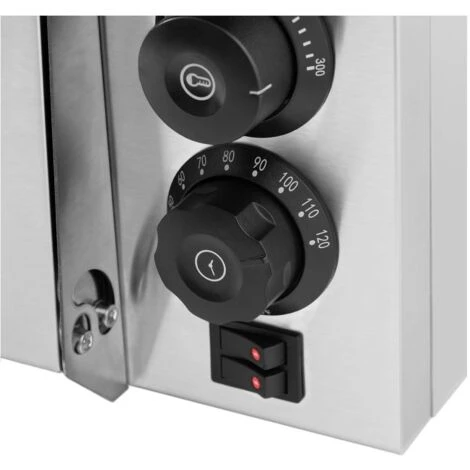 Il pratico forno per pizza elettrico colpisce inoltre per la sua funzione timer con cui è possibile preimpostare i tempi di cottura fino a 120 minuti. La base di pietra in argilla refrattaria garantisce inoltre pizze gustose grazie all’ottimale distribuzione del calore. Le sue dimensioni compatte rendono il forno per pizza professionale adatto a qualsiasi vetrina e offre spazio a sufficienza per pizze dal diametro di Ø 36 cm.