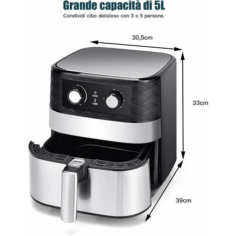 Grande capacità per famiglia: Questa friggitrice ad aria ha un ampio spazio di 30,5x39x33cm , è abbastanza grande per preparare il pasto di tutta la famiglia. Puoi anche usare questo forno per preparare rapidamente cibi deliziosi. È piuttosto adatto per servire cibi gustosi in una varietà di feste.