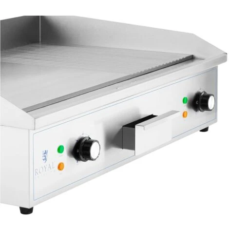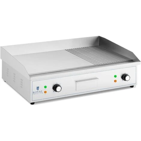 Con il fry top elettrico RCPG51-M dalle attrezzature per la gastronomia di Royal Catering puoi deliziare la tua clientela con pietanze grigliate tutto l’anno. Per bistecche, hamburger, pesce, omelette, tortillas e verdure: con questa piastra grill elettrica la tua fantasia non conoscerà limiti. La piastra genera poco fumo e garantisce un lavoro igienico e pulito. Inoltre, questo fry top liscio è ideale per l’uso in cucine di grandi dimensioni, chioschi, ma anche in food truck o durante i catering.