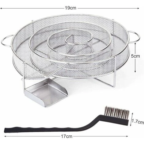 Dimensioni : 19 × 16,5 × 5 cm Materiale: Affumicatore: Acciaio inossidabile Spazzola per la pulizia: Acciaio inossidabile e plastica Manutenzione: Dopo l’uso, pulire con la spazzola e poi asciugare con uno strofinaccio o asciugare all’aria.