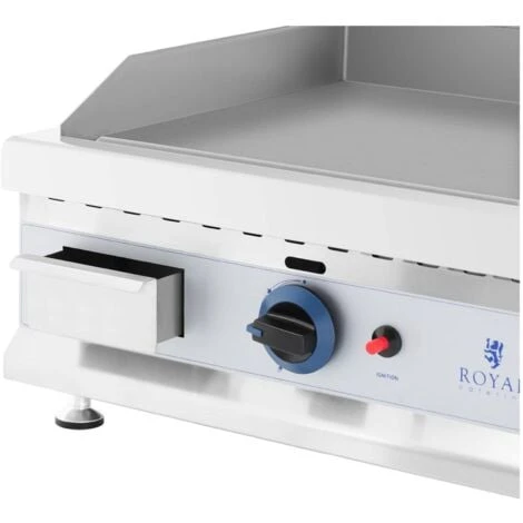 La piastra a gas professionale dispone di un paraschizzi laterale e posteriore che protegge il cibo dal vento e dalla dispersione di calore, impedendo allo stesso tempo che il cibo cada o che gli schizzi di grasso sporchino il piano di lavoro. Questa griglia a gas è fatta di acciaio inossidabile durevole ed è quindi particolarmente resistente alla corrosione e facile da pulire.