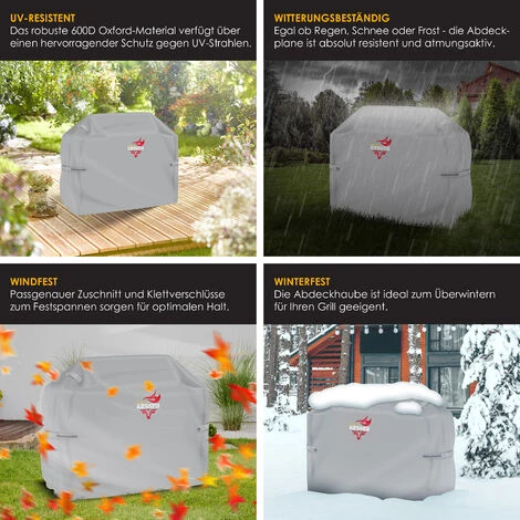 Grazie alle versioni di diversi colori e alle dimensioni , la copertura per barbecue ideale per il vostro barbecue è garantita e quindi si adatta perfettamente al colore del vostro giardino. In caso di sporcizia sulla copertura si può semplicemente sciacquare con acqua e se dovete fare il barbecue per diversi giorni di seguito , potete facilmente riporre la copertura in modo compatto.