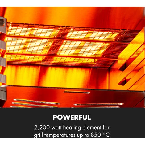 L’elemento riscaldante a infrarossi del grill ad alta temperatura Hannibal di Klarstein irradia gli alimenti con un calore particolarmente intenso a una potenza di 2.200 Watt. Sulla griglia d’acciaio inox è possibile grigliare alla perfezione soprattutto le bistecche: grazie al CharForce System integrato ad alte temperature fino a 850 °C e con svariate altezze di inserimento per i ripiani, la carne diventa bella croccante fuori e morbida dentro: le condizioni migliori per ottenere risultati da veri gourmet!