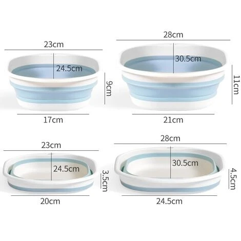 3. Il nostro lavabo pieghevole con fori per appendere sul bordo è perfetto per essere appeso. sul muro. Il bacino dell’acqua pieghevole può stare in piedi da solo quando è in uso e può essere facilmente ripiegato. A la sua altezza originale, che può risparmiare più spazio.