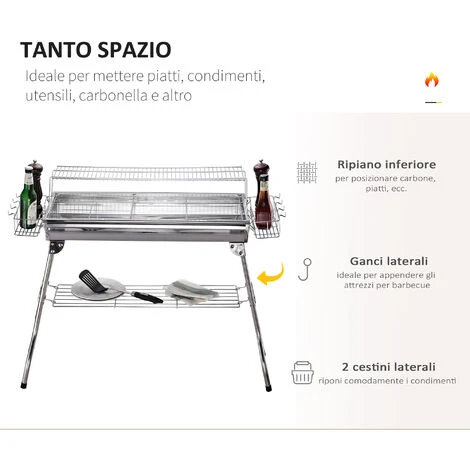 I veri professionisti del BBQ sanno che il sapore affumicato che questo tipo di cottura dona alle pietanze, è imbattibile. Per questo Outsunny ha creato questo incredibile prodotto: in acciaio inossidabile, è dotato di due griglie antiaderenti, per evitare che i tuoi cibi si attacchino alle superfici, e apposite ventole, per mantenere una ventilazione ottimale. Il design pieghevole è perfetto per trasportare comodamente il BBQ da una destinazione all’altra. Sfida i tuoi amici, è diventa il miglior cuoco in circolazione con il tuo nuovo barbecue Outsunny.