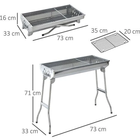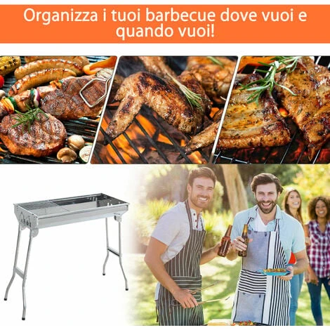 Questa leggera e portatile griglia sarà un ottimo compagno per un barbecue in giardino, in campeggio o per un picnic con la famiglia o amici. Realizzato in acciaio inossidabile di elevata qualità e lavorazione ai minimi dettagli. Resistente alle alte temperature, alla deformazione, corrosione e ruggine. Questo barbecue a carbonella è facile da pulire dopo l’uso. Le 2 gambe pieghevoli facilitano il trasporto in viaggio. Con questa griglia, potrai organizzare i tuoi barbecue in ogni momento.