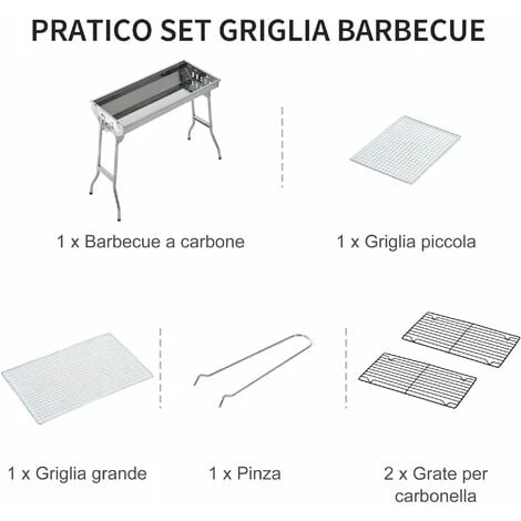 - • 1 × Griglia barbecue • 2 × Grate per carbonella • 2 × Grate di diverse misure • 1 × Pinza