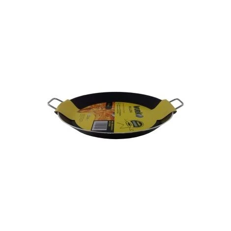 Paella in alluminio a induzione 42 cm.- Paella in alluminio a induzione da 42 cm, con Teflon antiaderente per tutti i tipi di cucine.- MARCA: WURKO.- Materiale: Alluminio con due strati antiaderenti.-Fondo in acciaio inossidabile 18 %.-Maniglie in metallo.- Dimensioni: 42 x 5 cm. Spessore: 3 mm.- Adatto per forno e lavastoviglie. – Peso: 1524 gr.- Colore: nero.