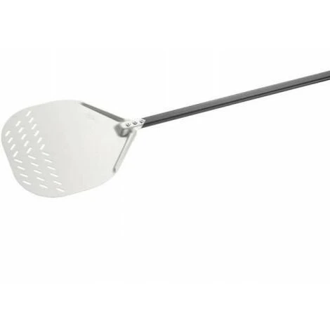 Pala per pizza fatta in casa , testa in alluminio anodizzato forata da 32 cm. manico lunghezza 120 cm. Made in Italy, Qualità Professionale.Strumento indispensabile per inserire la pizza nel forno.La particolare foratura permette di scaricare la farina in eccesso dal fondo della pizza.L’elevata leggerezza la rende perticolarmente comoda e maneggevole da utilizzare, rispetto a quelle in acciaio inox, molto piu’ pesanti.La particolare finitura ulta liscia permette un perfetto scorrimento della pizza sulla pala.