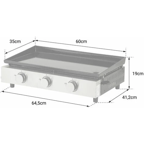 – Piastra: L 64,5 × P 41,2 × H 19 cm