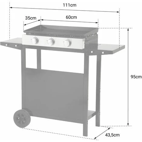 – Griglia + carrello: L 111 × P 43,5 × H 95 cm