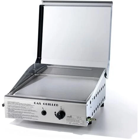Funzionale, maneggevole, leggera, ma altrettanto sicura e stabile grazie ai 4 piedini in gomma su cui si appoggia, la piastra 4044/Cover Met è totalmente realizzata in acciaio inox, compreso la camera di combustione e il coperchio di chiusura, ha una piastra molto ampia di 40 x 43 cm, il bruciatore in lamiera alluminata ad accensione rapida a 2 rampe da 3,7 kW, il cassetto raccogli sugo e l’accensione piezoelettrica inclusa.
