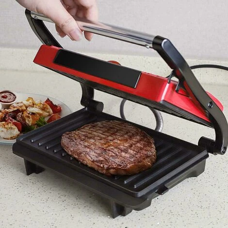 Piastra/Griglia elettrica multifunzione in alluminio con rivestimento antiaderente, si riscalda velocemente e ha una distribuzione del calore uniforme. Facile da pulire, adatta a tutte le esigenze (per cucinare carne, verdure, toast, ..).