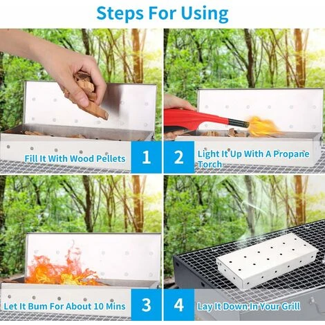 - Facile e veloce: riempi la scatola per affumicare con trucioli di legno, pellet di legno, trucioli di fumo o erbe aromatiche e posizionala semplicemente sopra la griglia di cottura.