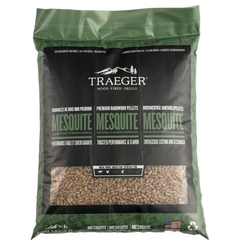 Il pellet di Mesquite Traeger dona ai cibi un sapore robusto in modo naturale ed è particolarmente consigliato per pollo, manzo e pesce.