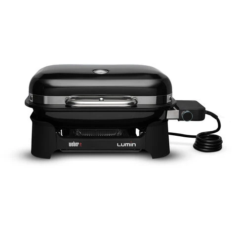 Weber Lumin Compact. Potenza totale: 2200 W, Tipo: Barbecue, Fonte di calore: Elettrico. Fattore di forma: Da tavolo, Tipo di superficie superiore: Griglia, Colore del prodotto: Nero. Tipo di controllo: Manopola. Tensione di ingresso AC: 230 V. Larghezza: 590 mm, Profondità: 420 mm, Altezza: 280 mm