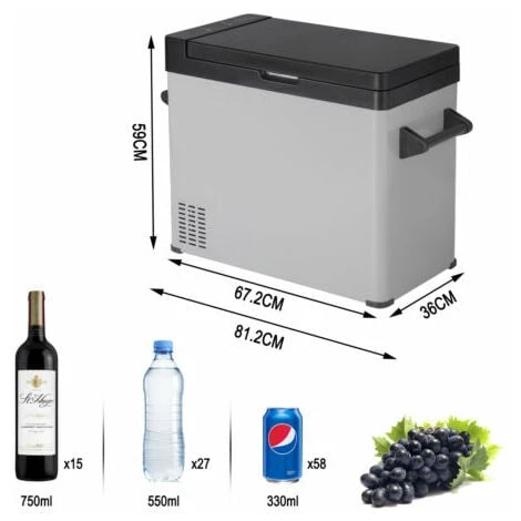Pannello digitaleCon pannello di controllo digitale. che ti permette di scegliere tra modalità. di risparmio (ECO) e modalità. rapida (MAX). decidi liberamente se visualizzare i gradi in Celsius o Fahrenheit e regola la temperatura a seconda delle tue necessità.. | Coperchio e maniglie praticheIl coperchio del mini frigo si apre dall&rsquo.alto. comodo per prendere o riporre spuntini e bibite. Il design con maniglia scavata ti permette di aprire e chiudere con facilità. il coperchio. Le impugnature ai lati ne agevolano lo spostamento e il trasporto. | Design internoQuesto frigorifero monoporta è. formato da un vano per congelare e un vano per refrigerare. potrai conservare bevande e alimenti di ogni tipo. Dimensioni vano congelatore: 39.7×27.5x50cm (LxPxH). 8×27.5×34.5cm (LxPxH) | A doppia alimentazionePuoi utilizzare questo frigo piccolo sia negli ambienti interni che in quelli esterni. sono inclusi un cavo DC (3.5metri 12-24V) per l&rsquo.uso su vetture e un cavo AC (2metri 220-240V) per l&rsquo.uso domestico. Devi solo attaccarlo alla presa accendisigari dell&rsquo.auto o alla corrente elettrica normale. |
