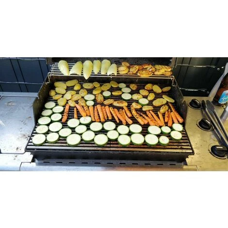 - 【Dimensioni】- 63cm(L) x 11.7cm(W) x 5.8cm(H) Materiale】: CROMATO. Griglia scaldavivande ideale per il tuo barbecue Weber (pacchetto) 1 griglia scaldavivande.